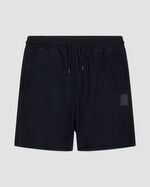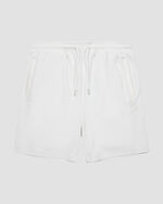The Meyba Barras Shorts in White for men. A clean and functional short designed for everyday comfort with a refined athletic look. This short is made from 100% polyester and features a regular fit, flat knit elastic encased waistband, and tubular cotton and polyester drawcords finished with a tonal small cylinder metal aglet for a premium touch.